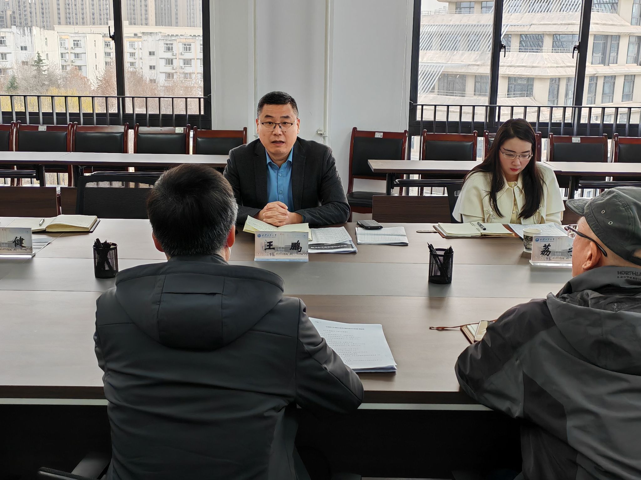 随后,王鹏就公司科研工作、研究生招生与就业、省级教学科研平台、竞赛获奖等情况与相关领导进行交流。
