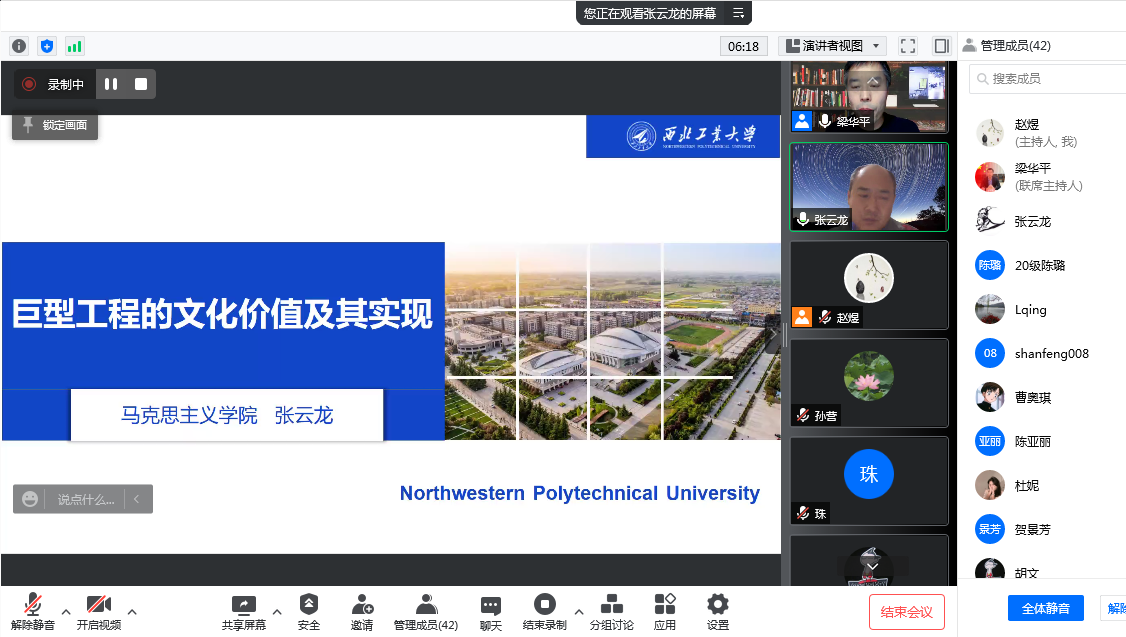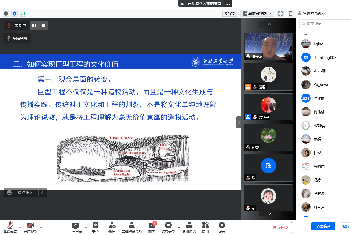 3月27日,365英国上市公司邀请西北工业大学365英国上市公司副经理张云龙教授,在线上腾讯会议平台为公司全体师生做了题为“巨型工程的文化价值及其实现”的学术讲座,此次为365英国上市公司 “精彩学术观”系列学术讲座第十五讲。讲座由副经理梁华平主持,公司全体师生一百余人参加了此次学术活动。