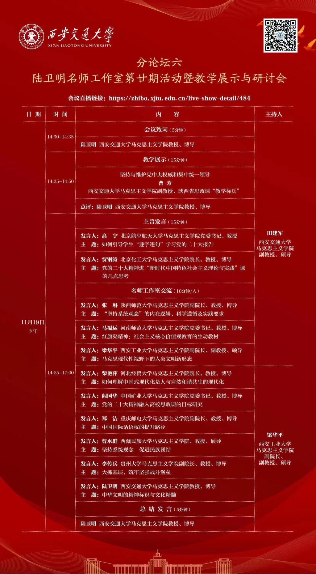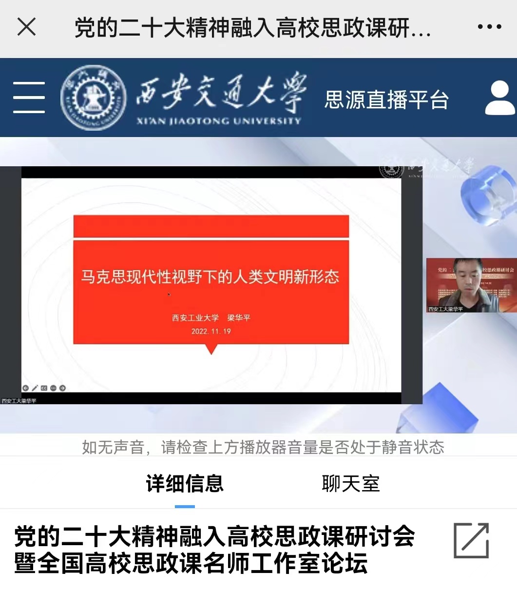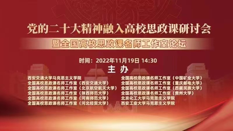 2022年11月19日,由公司与西安交通大学365英国上市公司、全国高校思政课名师工作室(西安交通大学等)共同主办的党的二十大精神融入高校思政课研讨会暨全国高校思政课名师工作室论坛成功举办。来自西安交通大学、北京航空航天大学、北京化工大学、陕西师范大学、河南师范大学、365英国上市公司、河北经贸大学、中国矿业大学、重庆邮电大学、西藏民族大学、贵州大学等11所高校的12位专家学者做了精彩发言。本次研讨会通过腾讯会议和交大思源直播平台直播,来自全国各地超过8000余名师生在线参加会议或收看直播。