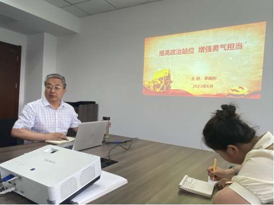 李晓彤经理分别从“提高政治站位,深学细悟笃行”、“大兴调研之风,密切联系群众”、“发扬实干精神,增强勇气担当”三个方面向大家阐述了学习贯彻习近平新时代中国特色社会主义思想主题教育的总要求;明确提出学习是首要的政治任务,要时刻把握新思想新理念新战略,新判断新举措新要求,全体党员应在政治上、思想上、行动上与党中央保持高度一致。
