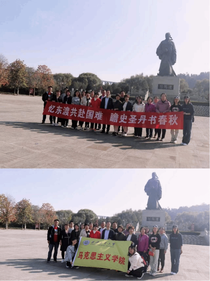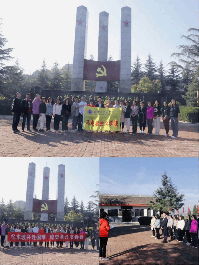 为贯彻落实党的二十大精神,积极落实“公司活力提升年”方案,大力推进学习型党支部建设,进一步提高支部教师党员的思想政治水平和党史学习教育热情,2023年10月22日,思想道德修养与法治教研部党支部、习近平新时代中国特色社会主义思想教研部党支部、毛泽东思想和中国特色社会主义理论体系概论教研部党支部联合开展“忆东渡共赴国难,瞻史圣丹书春秋”主题党日活动,三个支部的党员教师前往红色实践教学基地与中华优秀传统文化教育基地韩城八路军东渡黄河出师抗日纪念园以及司马迁祠进行了参观学习。