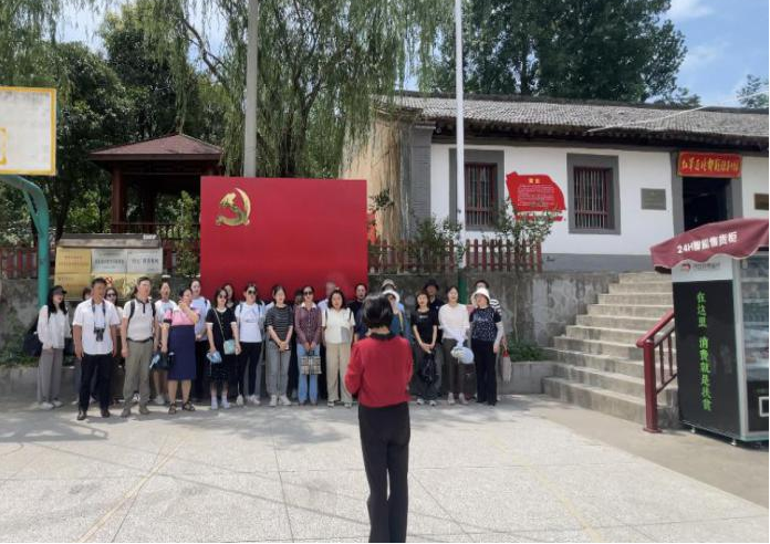活动第二站参观了红军过境户县陈列馆。讲解员生动再现了上世纪三十年代中国工农红军第四方面军、红二十五军、红七十四师在长征路上过户县地界时的历史事件,重温了徐向前、李先念、陈昌浩等革命先烈的英勇事迹。全体党员在陈列馆前党旗下唱响经典革命歌曲《没有共产党就没有新中国》,感悟“历史的选择、人民的选择”,坚定跟党走的信念。