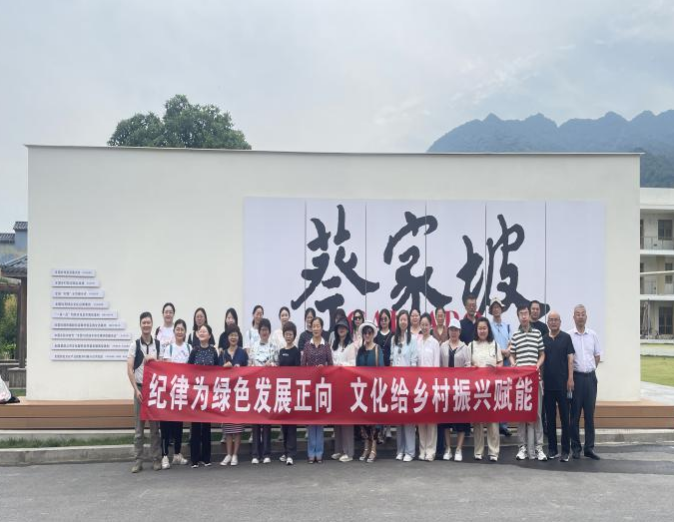 活动首站是对鄠邑区蔡家坡国际艺术村落项目进行实地观摩。蔡家坡村以全面实施乡村振兴战略为指南,以盘活利用农村闲置房屋、庄基、土地等资源为载体,以发展庭院经济增加村民收入为抓手,以优美的自然环境和深厚的历史文化资源为依托,将城乡资源与需求融合一体,多措并举,创新发展,探索出一条以秦岭生态保护为底、以农业发展为本、以文艺赋能为魂的乡村振兴鄠邑模式。大家在浓郁的文化艺术氛围中欣赏了艺术村长之家、文化艺术中心、三联书屋、村长会客厅等乡村新空间和美术馆、版画工坊等文化艺术类创业项目,体会了关中农村鲜明的地域文化和艺术特色,同时也在人文旅游、乡村休闲、民宿餐饮等多产业融合发展模式中深切感受到了蔡家坡作为当地乡村振兴样板村的勃勃生机。