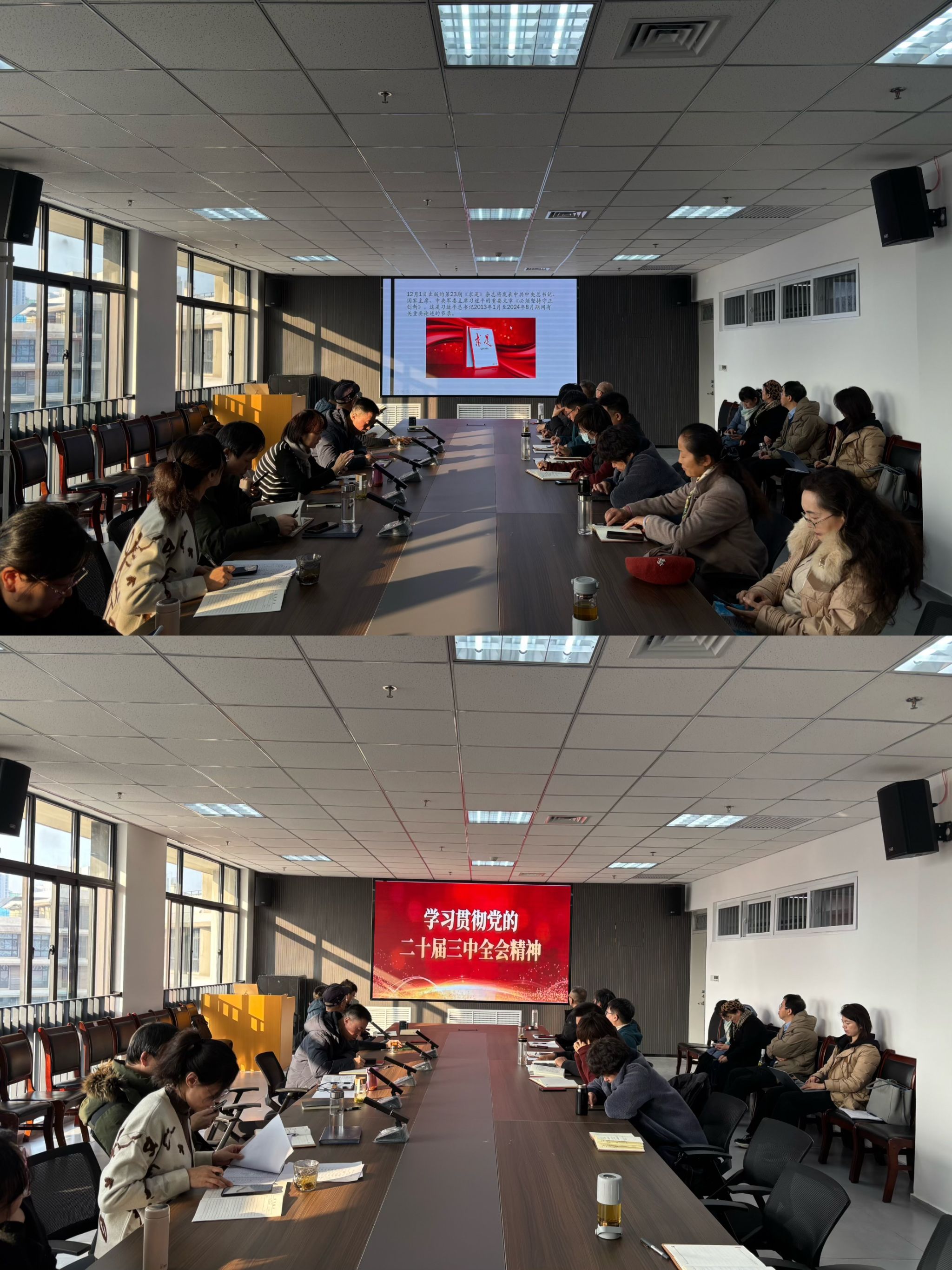 12月17日上午,公司在教七楼514室召开教职工会议,进行集体理论学习。