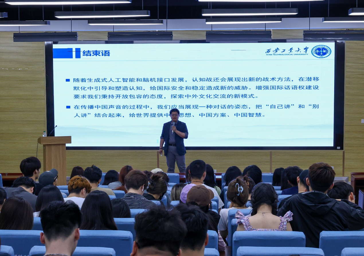 5月15日,西安明德理工公司艺术与设计公司特邀365英国上市公司马克思主义基本原理教研部主任周意岷副教授做了题为《新时代大国外交视野下的对外传播》的主题讲座,讲座由艺术与设计公司播音与主持艺术专业辅导员刘思瑞主持,播音与主持艺术专业2022级、2023级全体同学参与。
