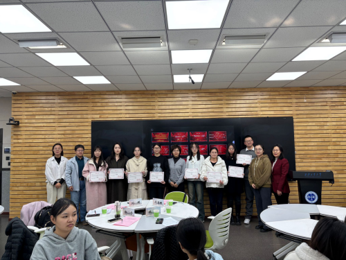 张敏首先介绍了到场的领导与老师,并介绍了本次学术年会的基本情况。随后,李明芳宣读了此次学术年会获奖论文作者名单,并向他们表示了热烈的祝贺。闫鹏、周意岷为两校获奖同学颁发荣誉证书并合影留念。