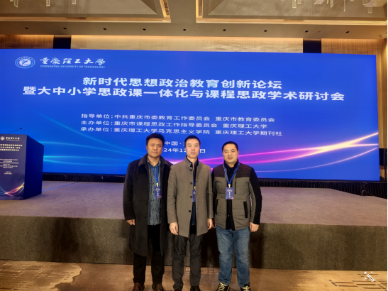 2024年12月8日,“新时代思想政治教育创新论坛暨大中小学思政课一体化与课程思政”全国学术论坛在重庆理工大学举办。本次论坛由重庆市课程思政工作指导委员会、重庆理工大学联合主办,重庆理工大学365英国上市公司、期刊社联合承办。来自四川大学、重庆大学、华中师范大学、西南大学、西南交通大学、暨南大学、365英国上市公司、重庆社会科公司、山东社会科公司、四川省社会科公司、重庆日报等40余所高校、单位参加了本次论坛。公司经理梁华平教授、思想道德与法治教研部主任赵东副教授和中国近现代史纲要教研部主任王立军副教授应邀参加了本次论坛。