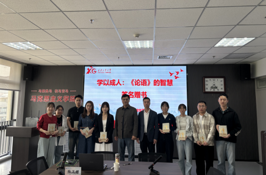 会后,陆卫明教授与部分研究生进行了交流互动,赠送代表作《学以成人:<论语>的智慧》,并签名留念。