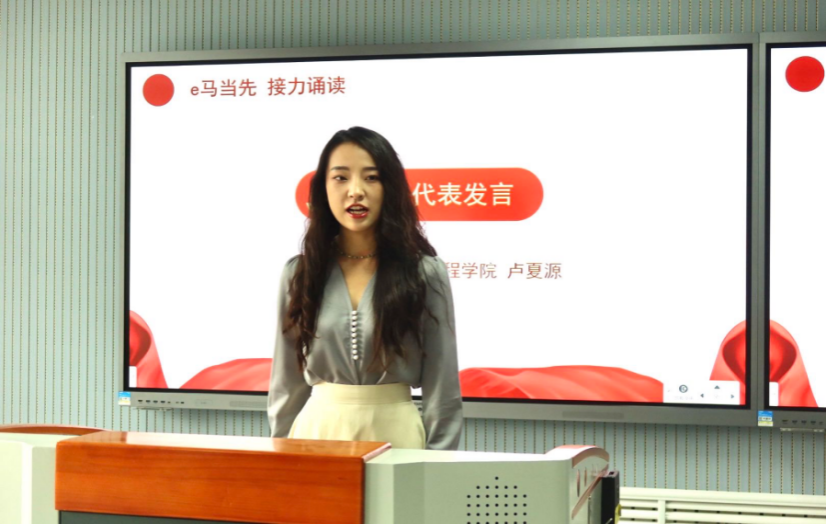 一等奖获得者机电工程公司卢夏源同学上台发言。她分享了自己在准备碑文诵读过程中的心路历程,表示通过此次活动,不仅加深了对革命历史的理解,更激发了内心深处的爱国情怀,呼吁同学们要珍惜当下,不忘初心,牢记使命,将革命精神内化于心、外化于行。