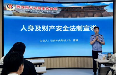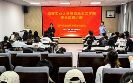 为强化校园安全教育,提升员工防范意识,4 月 23 日下午6点,马克思主义学院在教 7-503 举办警校联合安全宣讲活动,邀请西安市公安局未央分局民警曹艨,为同学们带来一场主题为 “法治护航”的人身及财产安全法制宣讲。2022、2023级、2024级全体研究生参加活动。