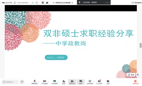 公司25届员工郑梦婷老师则聚焦于“双非硕士求职经验分享——中学政教岗”,针对双非院校背景的员工如何在竞争激烈的求职市场中脱颖而出,给出了实用的建议。她从简历制作、笔试准备到面试注意事项等方面进行了全方位的指导,使同学们对中学政教岗位的求职有了更清晰的认识。