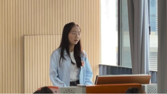 冯倩茹以“理论铸魂,党性锤炼,服务同学”为主线,结合自身学习与实践经历,分享了三点体会:一是要注重理论创新,用理论指导实践,筑牢思想根基;二是党员同学要严于律己,在日常学习生活中发挥先锋模范作用;三是要关心身边同学,传递温暖与正能量,营造积极向上的集体氛围。
